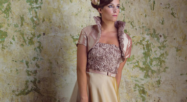 Zart und äußerste feminin. Mit einem verführerischen Mix aus einem mit Seidenblüten drappierten Corsagenoberteil und einem mehrlagigem Seidenchiffonrockteil mit opulenter Schleppe ist dieses Brautleid Eleganz pur. Ein Zusammenspiel verschiedener Texturen in Nuancen von Pudertönen machen dieses Brautkleid einmalig!